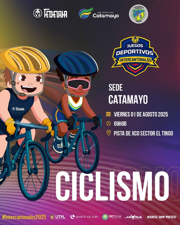 En la continuidad de la ejecuciòn de los Juegos Intercantonales “ Catamayo 2025”, se tiene planificado el viernes 01 de julio del 2025 a partir de las 9h00 en la pista de XCO, séctor el Tingo, el evento de exhibición en la disciplina de Ciclismo, con las delegaciones de los cantones de: Calvas y Loja, donde los amantes del caballito de acero, podrán demostrar técnicas y destrezas en diferentes modalides.