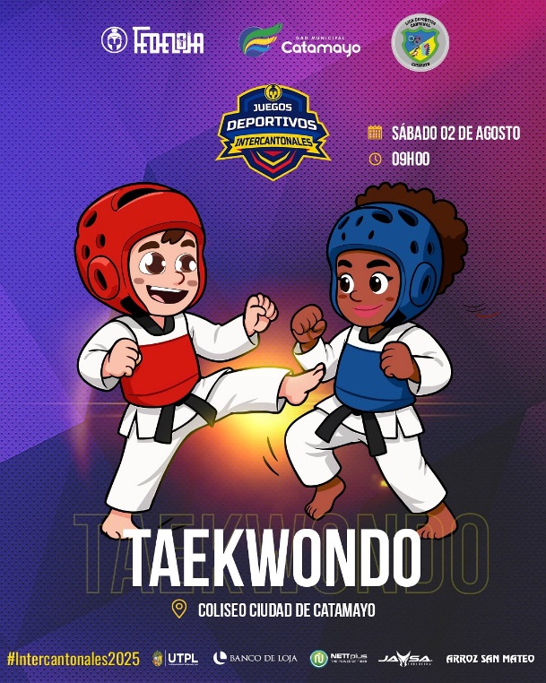 Los taekwondistas de los cantones de: Loja, Saraguro, Calvas, Célica y Espíndola, estaràn exponiendo técnicas con la exhibiciòn de patadas, puñetazos que prevalecen la técnica y destreza de los ejecutantes sumado a ello el enfoque de valores como la integridad, perseverancia, control y respeto a sus contricantes en el marco de esta lid deportiva, a desarrollarse en Coliseo “ Ciudad de Catamayo” el sábado 02 de agosto a las 9h00.