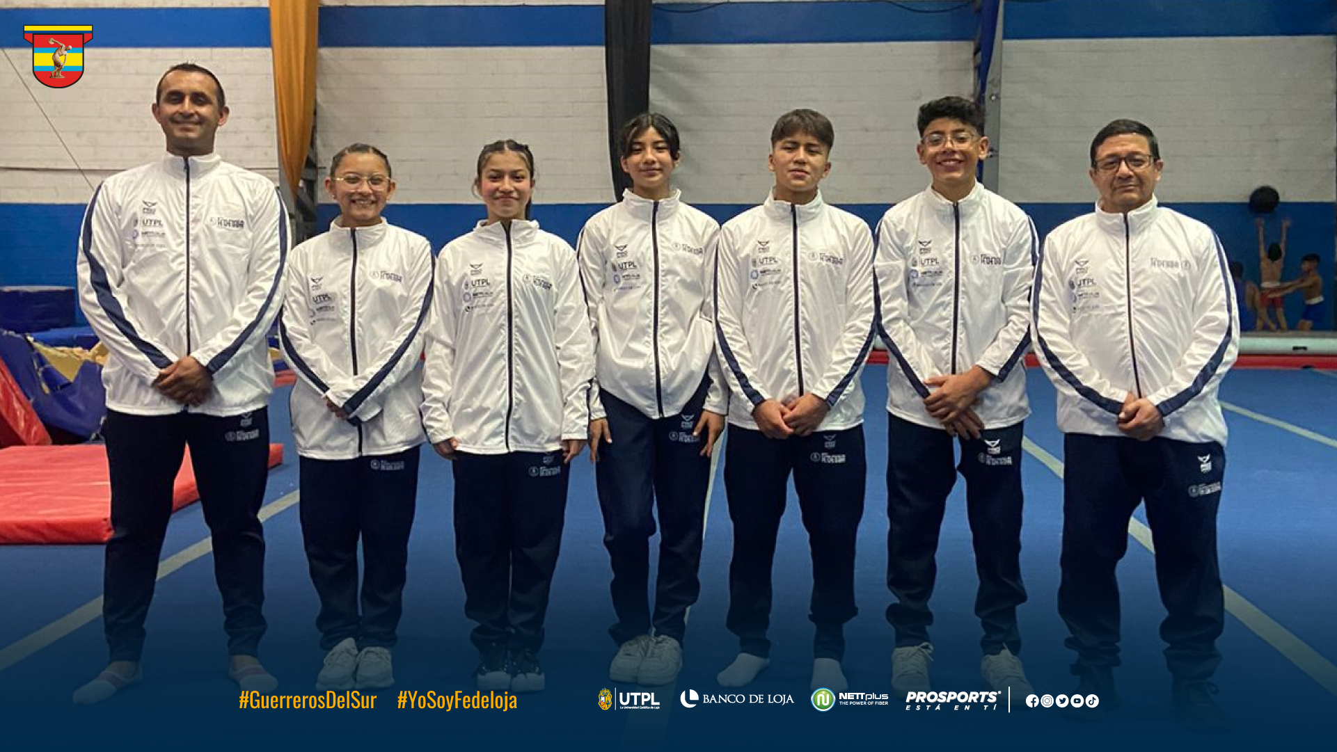 La delegación lojana se encuentra conformada por: Any Alvarado Pasaca, Josué Mariño Meza, Bianca Ochoa Flores, Mikaela Quizhpe Morocho y Mateo Vargas Mejía; en la parte técnica los sureños contarán con el apoyo del Ing. Luís Riofrío, entrenador de Gimnasia Artística de Fedeloja, Ing. Alba Morocho (entrenadora), Md. Alba Quizhpe y Lic. Gabriel Fernández Castillo (asistentes) y Mgs. Nelson Quizhpe (Delegado).