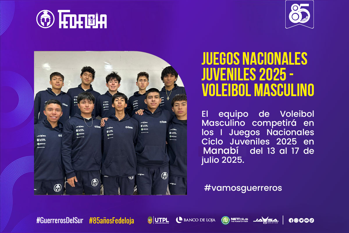 Las competencias de Voleibol Sala de los I Juegos Deportivos Nacionales Ciclo Juvenil 2025, se realizarán en el Coliseo de la Federación Deportiva Provincial de Manabí del 13 al 18 de julio del 2025. Podrán participar los deportistas nacidos desde el año 2006 al 2012 (13 -19años) ambos géneros.